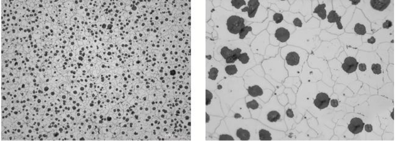 Kandungan karbon yang lebih tinggi boleh menggalakkan grafitisasi casting. Oleh kerana grafit mengambil bentuk sfera, ia dapat menyerap tenaga dalam aplikasi mekanikal dan dengan itu meningkatkan sifat fizikal jentera.